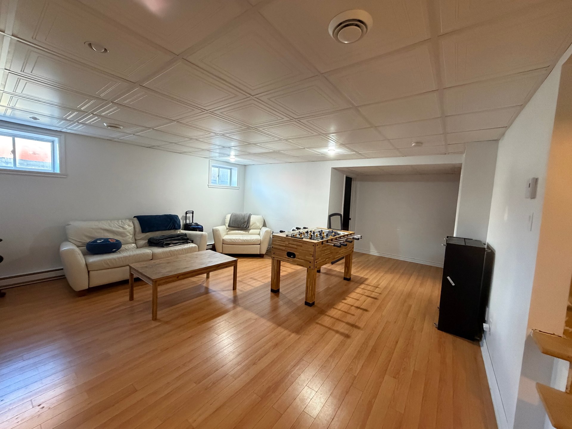 Le sous-sol enti?rement am?nag? offre une grande salle